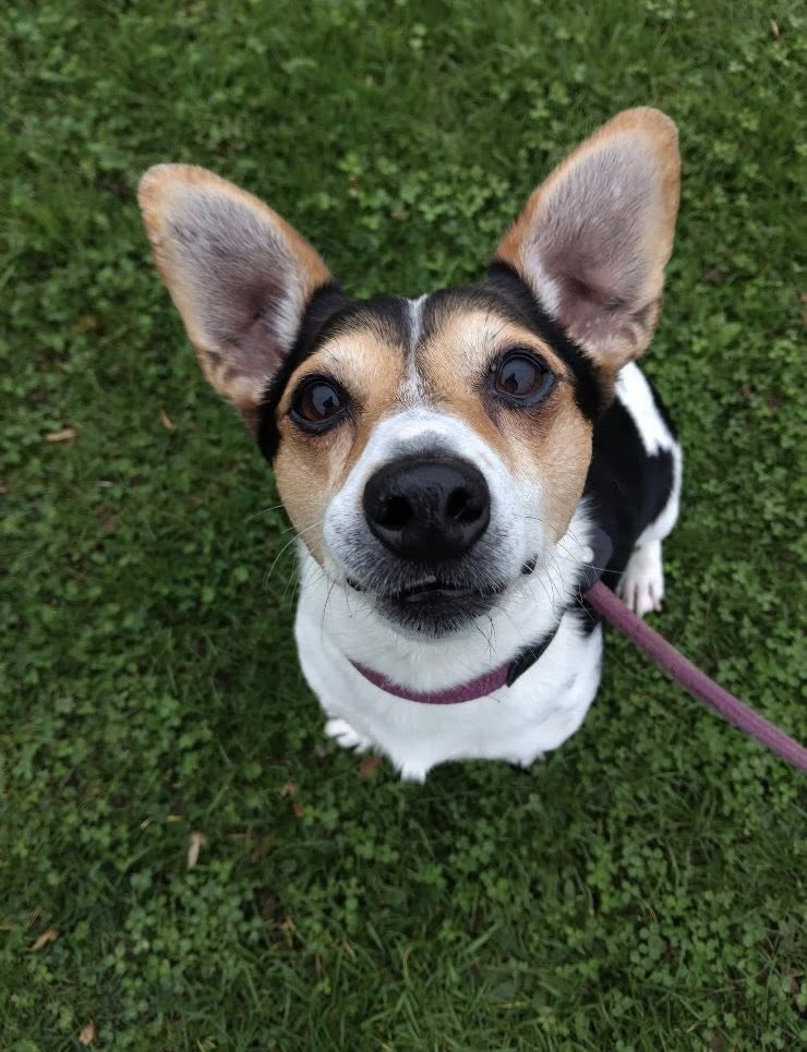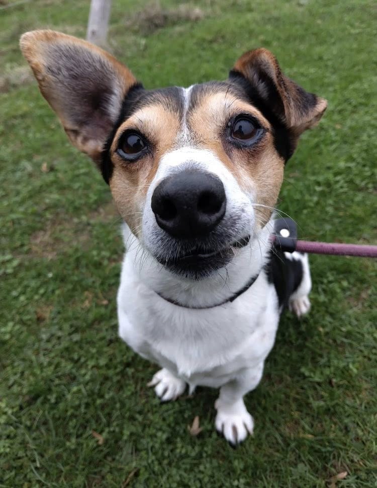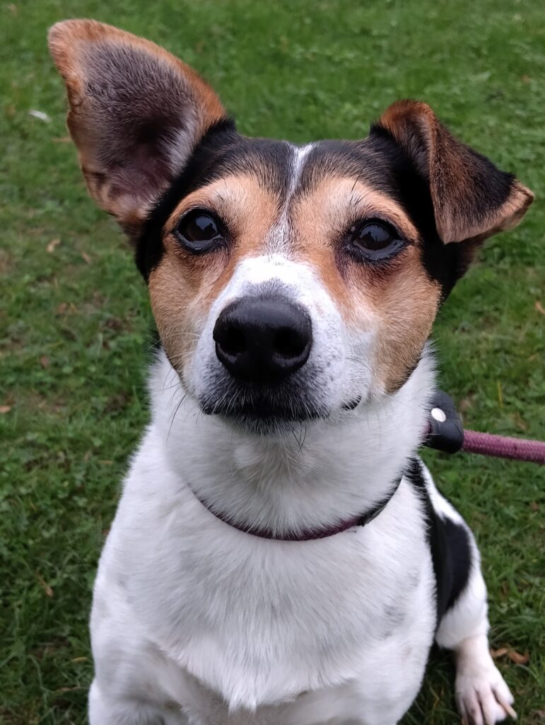 Please meet Oreo, a very sweet Jack Russell Terrier, around 7–8 years old.